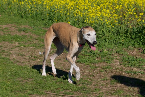 Cilla was the lone whippet and Grand Dame of Ardent Hounds. We first learned of Cilla from the folks at the Whippet Rescue of NCWFA. Cilla was found abandoned in the harsh Nevada dessert and were honored to have fostered her back to health. Due to her advanced age and many ailments, our fostering had been of the longer-term variety. Cilla proved to be made of some pretty tough stuff and fit right in as the elder statesperson of Ardent Hounds. The other dogs respected her imensely and pretty much did as they were told. All she needed to do was give the occaisional look or nod and other hounds knew she meant business. As a companion her rough exterior was belyed by her soft and gentle nature.