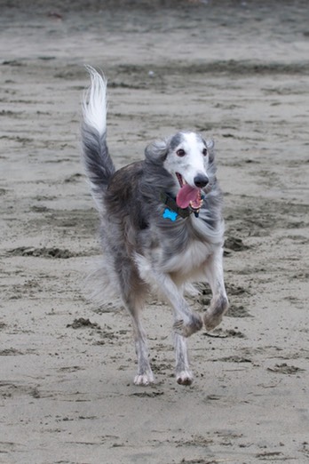 Surfer is the resident clown and perpetual play partner at Ardent Hounds. He loves all forms of fun and games, from running large circles around his pals at the beach to all forms of games with toys. While easily the tallest of our hounds, Surfer's height and stature is easily matched by his youthful and affectionate personality. Like many of the hounds at Ardent, he is most happy when lying on someone's lap.